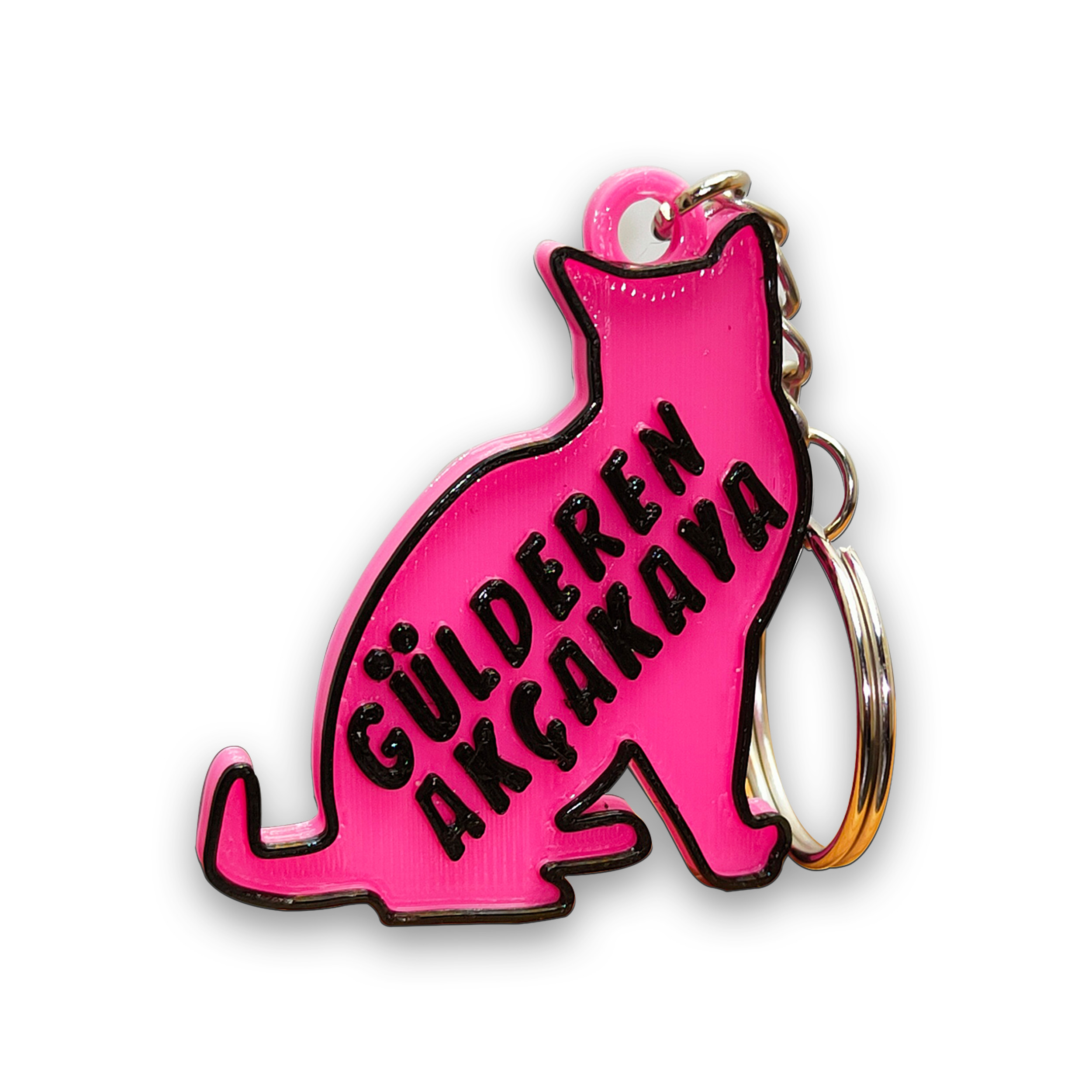 Kedi figürlü anahtarlık modeli üzerine isim yazdırmak için sipariş sonrası "sipariş notları" kısmından bizlere ulaşabilirsiniz.